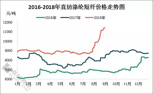 圖3 2016-2018年江蘇直紡滌短價格走勢圖