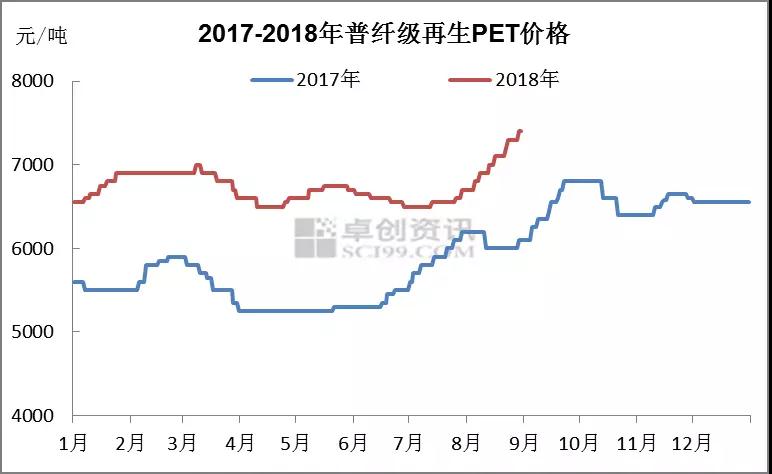 本周再生PET市場繼續(xù)上行,價格刷新年內(nèi)高點。截至收盤,華東市場仿大化白片未含增值稅價格在7400元/噸,較上周上漲100元/噸,漲幅在1.36%。