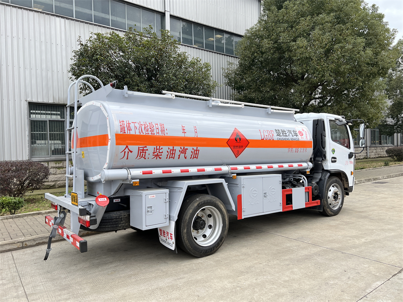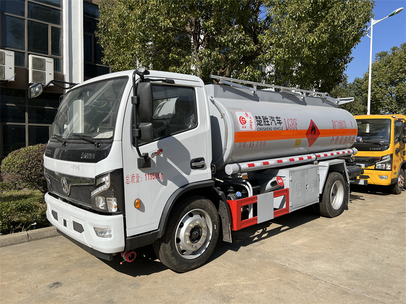 上裝配置:公告容積8.5立方,單倉帶溢流閥80-60泵,全套歐標(一個歐標罐口,一個海底閥,一個防溢流探桿及插座、一個廢氣回收、一個下裝油口)智能海底閥。大流量加油機及卷盤,升降護欄。配一個防火帽,兩根等長的輸油管及陰陽端,兩個滅火器,兩個堵頭,帶后爬梯,鋼絲網走道,一個工具箱,安全告示牌,其它標配。保證整車外形尺寸、罐體尺寸、外形與公告一致(3)油漆:銀粉色,貼反光條,反光帶,反光板,三個“易燃液體”字
